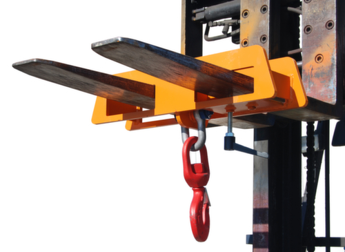 "longDescription": "<h2>Support pour crochet</h2><strong>Ramasser et transporter des charges en toute sécurité</strong><br><ul><li><strong>Système rapidement prêt à l'emploi</strong> - à accrocher aux dents de fourche du gerbeur</li><li><strong>Protection contre le glissement intempestif des dents de fourche</strong> grâce au dispositif de sécurité</li><li><strong>Soulèvement facile des charges</strong> grâce aux crochets à émerillon</li><li><strong>Robuste et durable</strong> - structure en acier stable</li></ul><br><h3>Le choix vous appartient :</h3><ul><li><strong>Design durable ou voyant</strong> - surface galvanisée à chaud ou avec laquage couleur</li><li>Pour soulever à l'aide d'une ou de deux dents de fourche</li><li>Convient au choix pour le levage par grue</li></ul>",