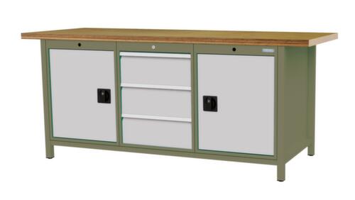 3 tiroirs, 2 armoires, 2 tablettes