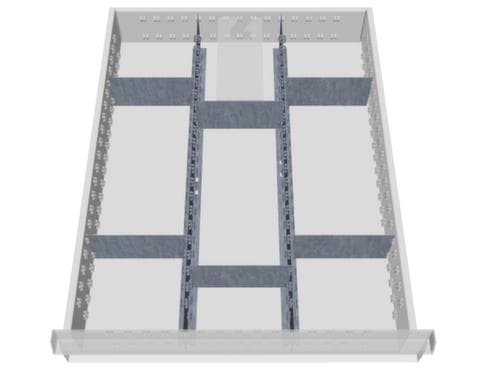 "metaDescription": "Bedrunka + Hirth Matériel de division des tiroirs pour établi - p. établi, 6sép.longitudinaux/2sép. en tôle, p. tiroirs lxP 450x600mm, face av. H 150mm",