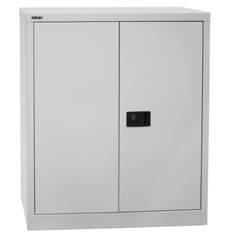 structure en acier. avec double porte battante. force par plateau 70 kg. Réglable au pas de 25 mm. portes haute stabilité grâce au profilé en caisson intérieur. verrouillable avec serrure à cylindre. Le verrouillage 3 points offre une grande stabilité et une protection anti-effraction efficace. soubassement : Le socle encastré permet de répartir uniformément le poids de l’armoire sur le sol. Cela augmente la stabilité et l’armoire peut supporter des charges plus lourdes qu’une armoire à pieds. De plus, la saleté, la poussière et l’humidité ne peuvent pas s’infiltrer sous l’armoire, ce qui réduit la surface de nettoyage. corps avec laquage en gris clair. face avant avec laquage en gris clair. niveaux avec laquage en gris clair.