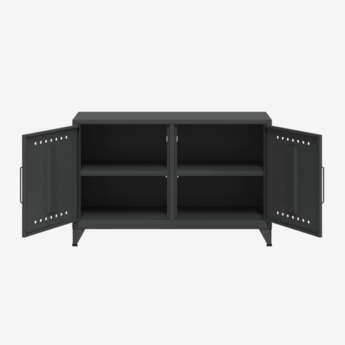 les principales dimensions de l’Bisley armoire universelle Fern Cabby en un coup d’œil :Le corps de l’armoire est fabriqué en acier et soudé. équipé de 1 tablette, passage de câble dans le panneau arrière et fixation pour câbles avec fermeture auto-agrippante. Les orifices de ventilation design intégrés dans la porte assurent une circulation de l'air en continu. La porte à double battant facilite particulièrement l’accès au contenu de l’armoire. fermeture affleurante de la porte au corps. l’armoire à poser s’ouvre avec poignées. 4 pieds garantissent un support stable.