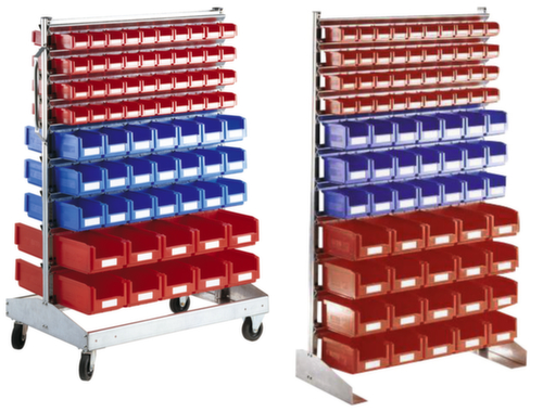 "description": "mobile, rayonnage départ, HxlxP 1705x1130x710mm, 142bacs PP, bilatéral, montants galvanisé",