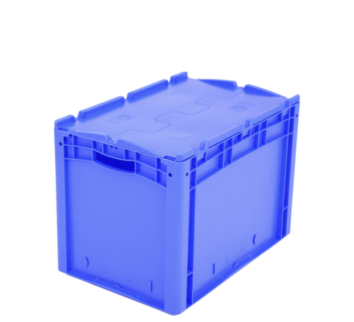 dimensions adaptées aux palettes européennes. en polypropylène incassable en bleu. Parois plein, fond plein. La marchandise stockée est protégée contre la poussière et la saleté grâce au couvercle à charnière en 2 parties. transport facile grâce à poignées ouvertes. Plusieurs niveaux gerbable. convient pour aliments. recyclable.