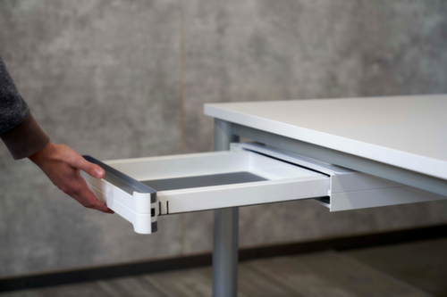 "title": "Bloc tiroirsen plastique blanc/grispour bureau à hauteur régl. électr.",
