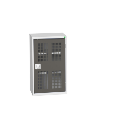 Le corps de l’armoire est fabriqué en acier et soudé de manière stable. Cela rend la structure particulièrement robuste et résistante, et donc plus durable. Les coins et les angles soudés du corps garantissent une plus grande étanchéité et donc une meilleure protection contre la poussière, l’humidité et la saleté qu’une structure vissée. En outre, il n’est pas nécessaire de procéder à des travaux d’entretien réguliers ni à des réajustements. porte battante avec fentes d'aération. verrouillable avec serrure à penne rotatif. Le socle encastré permet de répartir uniformément le poids de l’armoire sur le sol. Cela augmente la stabilité et l’armoire peut supporter des charges plus lourdes qu’une armoire à pieds. De plus, la saleté, la poussière et l’humidité ne peuvent pas s’infiltrer sous l’armoire, ce qui réduit la surface de nettoyage.