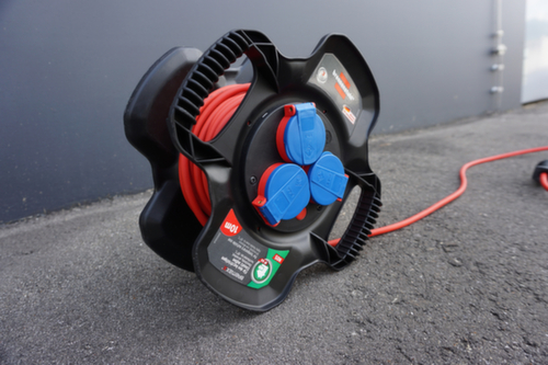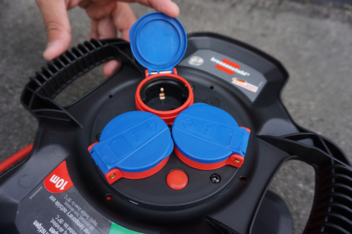 équipé de prises de courant avec couvercles à fermeture automatique contre la saleté et la poussière, et protection contre la surchauffe. 3 prises de courant. boîtier ouvert en mélange de caoutchouc spécial adapté aux usages intensifs. manutention facile avec poignée de transport intégrée.