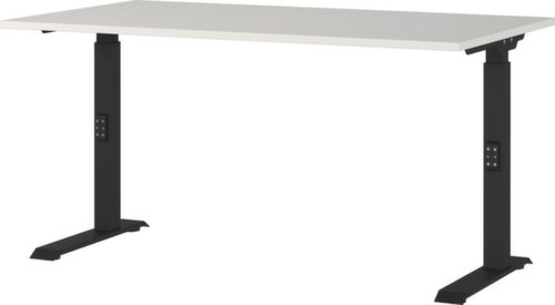panneau en aggloméré avec revêtement mélaminé, facile d’entretien finition gris clair. forme de panneau angulaire. bord Une bande de chant ABS résistant aux chocs protège tous les bords de fissures et d'éclatements inesthétiques. piètement en C en métal avec finition époxy résistante aux chocs et aux rayures en noir. réglage en hauteur via mécanisme. châssis avec patins en plastique.