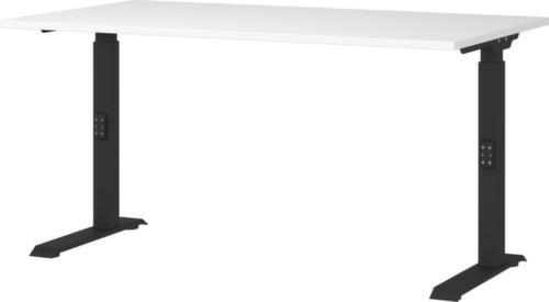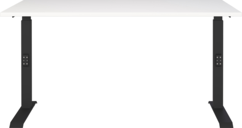 panneau en aggloméré avec revêtement mélaminé, facile d’entretien finition blanc. forme de panneau angulaire. bord Une bande de chant ABS résistant aux chocs protège tous les bords de fissures et d'éclatements inesthétiques. piètement en C en métal avec finition époxy résistante aux chocs et aux rayures en noir. réglage en hauteur via mécanisme. châssis avec patins en plastique.