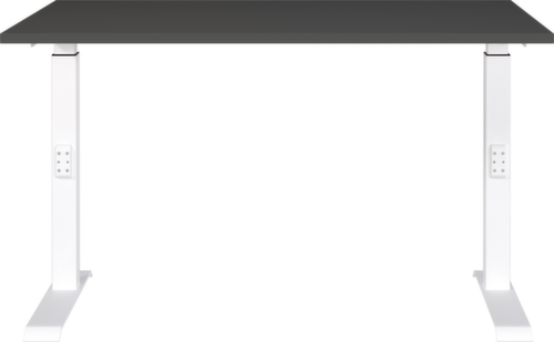 panneau en aggloméré avec revêtement mélaminé, facile d’entretien finition graphite. bord avec bande de chant ABS résistante aux chocs qui offre une protection contre les fissures et les éclatements disgracieux. piètement en C en métal avec finition époxy résistante aux chocs et aux rayures en blanc. réglage en hauteur via mécanisme. châssis avec patins en plastique de mise à niveau, parfaits pour compenser les inégalités du sol.