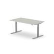panneau en aggloméré avec revêtement mélaminé, facile d’entretien finition MB White Grey. forme de panneau rectangulaire. piètement en T en RAL9006 aluminium blanc. réglage en hauteur via moteur électrique avec transmission manuelle. avec fiche Euro.