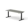 panneau en aggloméré avec revêtement mélaminé, facile d’entretien finition MP Platinum. forme de panneau rectangulaire. piètement en T en RAL9005 noir foncé. réglage en hauteur via moteur électrique avec transmission manuelle et affichage. fonctions : Mémorisation et rappel automatique des hauteurs de table programmées grâce à la fonction mémoire. avec fiche Euro.