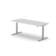 panneau en aggloméré avec revêtement mélaminé, facile d’entretien finition BI White. forme de panneau rectangulaire. piètement en T en RAL9006 aluminium blanc. réglage en hauteur via moteur électrique avec transmission manuelle. avec fiche Euro.