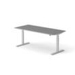 panneau en aggloméré avec revêtement mélaminé, facile d’entretien finition MS Slate. forme de panneau rectangulaire. piètement en T en RAL9006 aluminium blanc. réglage en hauteur via moteur électrique avec transmission manuelle. avec fiche Euro.