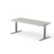 panneau en aggloméré avec revêtement mélaminé, facile d’entretien finition MP Platinum. forme de panneau rectangulaire. piètement en T en RAL9005 noir foncé. réglage en hauteur via moteur électrique avec transmission manuelle. avec fiche Euro.