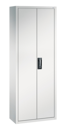 les principales dimensions de l’C+P armoire universelle en un coup d’œil :Le corps de l’armoire est fabriqué en tôle d'acier et soudé de manière stable. Cela rend la structure particulièrement robuste et résistante, et donc plus durable. Les coins et les angles soudés du corps garantissent une plus grande étanchéité et donc une meilleure protection contre la poussière, l’humidité et la saleté qu’une structure vissée. En outre, il n’est pas nécessaire de procéder à des travaux d’entretien réguliers ni à des réajustements. Grande flexibilité de l’aménagement intérieur grâce à la possibilité de régler la hauteur du compartiment par pas de 10 mm. équipé de tablettes. Fermeture avec protection contre la poussière via une porte à double battant. Le profilé en caisson intérieur et le pli sur tous les côtés augmentent la rigidité des portes et les rendent plus résistantes aux déformations. Elles peuvent ainsi résister à des charges plus importantes et offrent une haute protection antivol. l’armoire à tiroirs s’ouvre avec poignée encastrée. verrouillable avec la poignée à serrure Ergo-Lock. Grâce à la large poignée ergonomique, l'armoire en acier s'ouvre très facilement, même avec des gants, et se referme encore plus facilement en appuyant dessus grâce au mécanisme breveté. Pour un accès contrôlé au contenu, l'armoire Ergo-Lock est équipée par défaut d'une serrure à cylindre de sécurité. Le verrouillage 3 points offre une grande stabilité et une protection anti-effraction efficace.