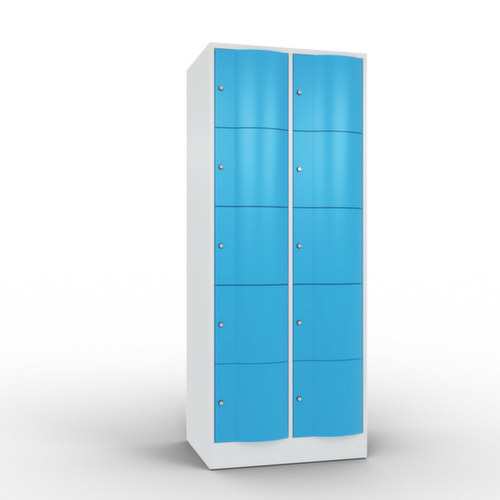 La porte battante convexe vers l’avant est absolument stable et résistante au vandalisme, même aux coups de pied. Les portes battantes sont montées sur des charnières robustes à espagnolettes internes et résistent ainsi à des sollicitations élevées. Chaque porte est équipée de série d’un amortisseur, de sorte que, même fermée avec élan, elle ne claque pas. Cela contribue non seulement à améliorer l’environnement sonore, mais protège aussi l’armoire en acier des dommages. De plus, la limitation d’ouverture de porte protège la porte contre l’extension excessive et contre le chevauchement de la surface utile avec l’armoire annexe. verrouillable avec serrure à cylindre. Les orifices de ventilation dans la paroi arrière assurent une bonne circulation de l’air dans chaque casier. Grâce au plateau supérieur, l’armoire à poser peut être utilisée comme surface de travail ou tablette supplémentaire. Le socle encastré permet de répartir uniformément le poids de l’armoire sur le sol. Cela augmente la stabilité et l’armoire peut supporter des charges plus lourdes qu’une armoire à pieds. De plus, la saleté, la poussière et l’humidité ne peuvent pas s’infiltrer sous l’armoire, ce qui réduit la surface de nettoyage. structure en tôle d'acier, soudé. corps avec thermolaquage. face avant avec thermolaquage.