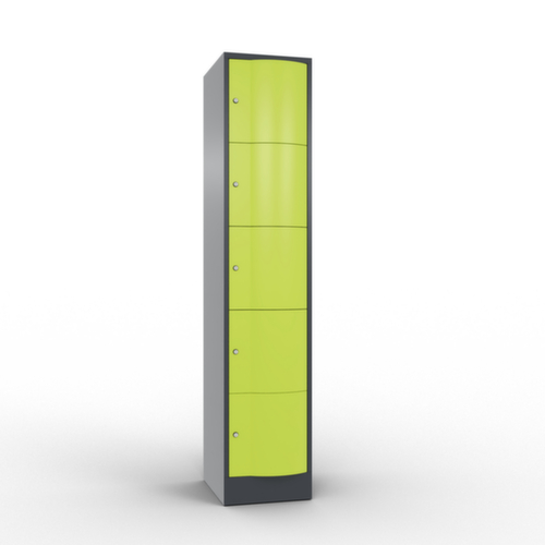 La porte battante convexe vers l’avant est absolument stable et résistante au vandalisme, même aux coups de pied. Les portes battantes sont montées sur des charnières robustes à espagnolettes internes et résistent ainsi à des sollicitations élevées. Chaque porte est équipée de série d’un amortisseur, de sorte que, même fermée avec élan, elle ne claque pas. Cela contribue non seulement à améliorer l’environnement sonore, mais protège aussi l’armoire en acier des dommages. De plus, la limitation d’ouverture de porte protège la porte contre l’extension excessive et contre le chevauchement de la surface utile avec l’armoire annexe. verrouillable avec serrure à cylindre. Les orifices de ventilation dans la paroi arrière assurent une bonne circulation de l’air dans chaque casier. Grâce au plateau supérieur, l’armoire à poser peut être utilisée comme surface de travail ou tablette supplémentaire. Le socle encastré permet de répartir uniformément le poids de l’armoire sur le sol. Cela augmente la stabilité et l’armoire peut supporter des charges plus lourdes qu’une armoire à pieds. De plus, la saleté, la poussière et l’humidité ne peuvent pas s’infiltrer sous l’armoire, ce qui réduit la surface de nettoyage. structure en tôle d'acier, soudé. corps avec thermolaquage. face avant avec thermolaquage.