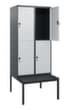 Les principales dimensions de C+P l’armoire vestiaire Classic Plus en un coup d’œil :par compartiment 2 casiers avec chacun 1 tringle et 3 doubles crochets coulissants anti-torsion. porte battante avec porte-étiquette et fentes d’aération. Les gonds intérieurs des portes battantes offrent l’avantage d’un visuel net, car aucune vis ou charnière n’est visible de l’extérieur. Le design de l’armoire n’est donc pas altéré et l’ensemble du meuble semble de meilleure qualité. La surface lisse est également plus facile à nettoyer, car aucun dépôt de saleté ou de poussière n’est à craindre aux endroits inaccessibles. Chaque porte est équipée de série d’un amortisseur, de sorte que, même fermée avec élan, elle ne claque pas. Cela contribue non seulement à améliorer l’environnement sonore, mais protège aussi l’armoire en acier des dommages. La structure BIONIC Steel Frame, inspirée de la nature, est une construction particulièrement efficace et stable. La structure interne raffinée composée de pliages, d’entretoises et d’espaces, ainsi que la plus grande épaisseur de matériau aux endroits cruciaux, comme à l’avant des parois latérales et dans les profilés de cloisons et de caissons, augmentent encore la rigidité. verrouillable avec serrure à cylindre. Les orifices de ventilation supplémentaires dans le compartiment, combinés aux fentes d’aération dans la porte, améliorent le flux d’air. L’intérieur de l’armoire est ainsi mieux ventilé et son contenu sèche plus vite, sans générer de mauvaises odeurs. Le banc intégré assure une utilisation efficace de l'espace disponible. Il permet de s'habiller et de se déshabiller facilement et offre un espace de rangement supplémentaire sans prendre de place. Les lames sont en plastique. structure en acier, soudé de manière stable. Cela rend la structure particulièrement robuste et résistante, et donc plus durable. Les coins et les angles soudés du corps garantissent une plus grande étanchéité et donc une meilleure protection contre la poussière, l’humidité et la saleté qu’une structure vissée. En outre, il n’est pas nécessaire de procéder à des travaux d’entretien réguliers ni à des réajustements. corps avec thermolaquage en RAL7035 gris clair, face avant avec thermolaquage en RAL7035 gris clair.