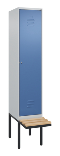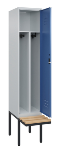 Les principales dimensions de C+P l’armoire vestiaire Classic Plus en un coup d’œil :par compartiment tablette pour chapeaux, tringle à vêtements, crochet. Le compartiment sous la tablette à chapeaux est divisé par une cloison de séparation médiane. Cela permet une séparation nette en noir et blanc des vêtements de travail et des vêtements de tous les jours. porte battante avec porte-étiquette et fentes d’aération. Les gonds intérieurs des portes battantes offrent l’avantage d’un visuel net, car aucune vis ou charnière n’est visible de l’extérieur. Le design de l’armoire n’est donc pas altéré et l’ensemble du meuble semble de meilleure qualité. La surface lisse est également plus facile à nettoyer, car aucun dépôt de saleté ou de poussière n’est à craindre aux endroits inaccessibles. Chaque porte est équipée de série d’un amortisseur, de sorte que, même fermée avec élan, elle ne claque pas. Cela contribue non seulement à améliorer l’environnement sonore, mais protège aussi l’armoire en acier des dommages. La structure BIONIC Steel Frame, inspirée de la nature, est une construction particulièrement efficace et stable. La structure interne raffinée composée de pliages, d’entretoises et d’espaces, ainsi que la plus grande épaisseur de matériau aux endroits cruciaux, comme à l’avant des parois latérales et dans les profilés de cloisons et de caissons, augmentent encore la rigidité. verrouillable avec serrure à cylindre. Les orifices de ventilation supplémentaires dans le compartiment, combinés aux fentes d’aération dans la porte, améliorent le flux d’air. L’intérieur de l’armoire est ainsi mieux ventilé et son contenu sèche plus vite, sans générer de mauvaises odeurs. banc à l’avant. Les lames sont en bois de hêtre. structure en acier, soudé de manière stable. Cela rend la structure particulièrement robuste et résistante, et donc plus durable. Les coins et les angles soudés du corps garantissent une plus grande étanchéité et donc une meilleure protection contre la poussière, l’humidité et la saleté qu’une structure vissée. En outre, il n’est pas nécessaire de procéder à des travaux d’entretien réguliers ni à des réajustements. corps avec thermolaquage en RAL7035 gris clair, face avant avec thermolaquage en RAL5023 bleu distant.