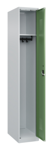 Les principales dimensions de C+P l’armoire vestiaire Evolo PLUS en un coup d’œil :par compartiment une tablette à chapeaux soudée au-dessus d’une tringle avec 3 doubles crochets coulissants anti-torsion. Les portes battantes peuvent être facilement personnalisées grâce au porte-étiquette pratique. Malgré la perforation décorative design qui est essentielle pour l'aération, l'armoire reste dans l'ensemble lisse, hygiénique et facile à nettoyer. Les gonds intérieurs des portes battantes offrent l’avantage d’un visuel net, car aucune vis ou charnière n’est visible de l’extérieur. Le design de l’armoire n’est donc pas altéré et l’ensemble du meuble semble de meilleure qualité. La surface lisse est également plus facile à nettoyer, car aucun dépôt de saleté ou de poussière n’est à craindre aux endroits inaccessibles. Chaque porte est équipée de série d’un amortisseur, de sorte que, même fermée avec élan, elle ne claque pas. Cela contribue non seulement à améliorer l’environnement sonore, mais protège aussi l’armoire en acier des dommages. La structure BIONIC Steel Frame, inspirée de la nature, est une construction particulièrement efficace et stable. La structure interne raffinée composée de pliages, d’entretoises et d’espaces, ainsi que la plus grande épaisseur de matériau aux endroits cruciaux, comme à l’avant des parois latérales et dans les profilés de cloisons et de caissons, augmentent encore la rigidité. verrouillable avec serrure à cylindre. Le concept d'auto-aération sophistiqué permet une circulation optimisée de l'air. Des espaces d'aération définis devant et derrière la tablette dans le dessous et dans le dessus du compartiment, en combinaison avec la perforation décorative dans la porte, contribuent à un flux d'air agréable. . L'intérieur de l'armoire est ainsi mieux aéré et son contenu sèche plus vite sans générer de mauvaises odeurs. Pour une apparence fine et un gain de place, l’armoire se pose directement au sol sans socle ni pieds. Des vis de mise à niveau assurent une pose sans vacillement en cas d’éventuelles irrégularités du sol. Le fond de l’armoire est galvanisé pour une protection anticorrosion améliorée. structure en acier, soudé de manière stable. Cela rend la structure particulièrement robuste et résistante, et donc plus durable. Les coins et les angles soudés du corps garantissent une plus grande étanchéité et donc une meilleure protection contre la poussière, l’humidité et la saleté qu’une structure vissée. En outre, il n’est pas nécessaire de procéder à des travaux d’entretien réguliers ni à des réajustements. corps avec thermolaquage en RAL7035 gris clair, face avant avec thermolaquage en RAL6011 vert réséda.