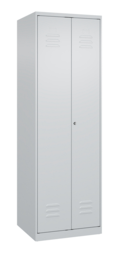 . Les principales dimensions de C+P l’armoire vestiaire Classic Plus en un coup d’œil :par compartiment 1 tringle robuste à profil ovale avec 3 doubles crochets coulissants anti-torsion, au-dessus une tablette à chapeaux continue tous les 2 compartiments. Cette tablette extra large offre un espace de rangement idéal pour les EPI comme les casques, les protections oculaires ou auditives. porte à double battant avec fentes d’aération et porte-étiquette. Les gonds intérieurs des portes battantes offrent l’avantage d’un visuel net, car aucune vis ou charnière n’est visible de l’extérieur. Le design de l’armoire n’est donc pas altéré et l’ensemble du meuble semble de meilleure qualité. La surface lisse est également plus facile à nettoyer, car aucun dépôt de saleté ou de poussière n’est à craindre aux endroits inaccessibles. Chaque porte est équipée de série d’un amortisseur, de sorte que, même fermée avec élan, elle ne claque pas. Cela contribue non seulement à améliorer l’environnement sonore, mais protège aussi l’armoire en acier des dommages. La structure BIONIC Steel Frame, inspirée de la nature, est une construction particulièrement efficace et stable. La structure interne raffinée composée de pliages, d’entretoises et d’espaces, ainsi que la plus grande épaisseur de matériau aux endroits cruciaux, comme à l’avant des parois latérales et dans les profilés de cloisons et de caissons, augmentent encore la rigidité. verrouillable avec serrure à cylindre. Chaque personne dispose de 2 compartiments qui peuvent être verrouillés ensemble via des portes convergentes. Cela permet de séparer de manière simple et efficace les vêtements de travail et ceux de tous les jours. Les orifices de ventilation supplémentaires dans le compartiment, combinés aux fentes d’aération dans la porte, améliorent le flux d’air. L’intérieur de l’armoire est ainsi mieux ventilé et son contenu sèche plus vite, sans générer de mauvaises odeurs. Pour une apparence fine et un gain de place, l’armoire se pose directement au sol sans socle ni pieds. Des vis de mise à niveau assurent une pose sans vacillement en cas d’éventuelles irrégularités du sol. Le fond de l’armoire est galvanisé pour une protection anticorrosion améliorée. structure en acier, soudé de manière stable. Cela rend la structure particulièrement robuste et résistante, et donc plus durable. Les coins et les angles soudés du corps garantissent une plus grande étanchéité et donc une meilleure protection contre la poussière, l’humidité et la saleté qu’une structure vissée. En outre, il n’est pas nécessaire de procéder à des travaux d’entretien réguliers ni à des réajustements. corps avec thermolaquage en RAL7035 gris clair, face avant avec thermolaquage en RAL7035 gris clair.