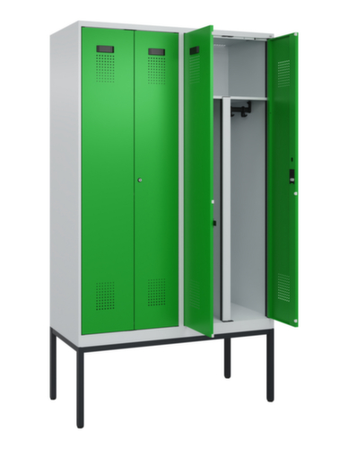 Le port d'un équipement de protection individuelle est incontournable dans de nombreuses entreprises. Un espace de rangement suffisant pour chaque employé est également nécessaire. Les deux compartiments disponibles par personne permettent non seulement de ranger correctement les vêtements et les équipements de travail, mais aussi de séparer les vêtements de tous les jours propres
