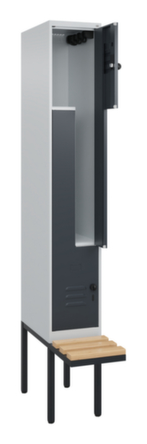 Les principales dimensions de C+P l’armoire vestiaire Classic Plus en un coup d’œil :par compartiment 1 tringle avec 3 doubles crochets coulissants anti-torsion. porte battante en Z avec porte-étiquette et fentes d’aération. Les gonds intérieurs des portes battantes offrent l’avantage d’un visuel net, car aucune vis ou charnière n’est visible de l’extérieur. Le design de l’armoire n’est donc pas altéré et l’ensemble du meuble semble de meilleure qualité. La surface lisse est également plus facile à nettoyer, car aucun dépôt de saleté ou de poussière n’est à craindre aux endroits inaccessibles. Chaque porte est équipée de série d’un amortisseur, de sorte que, même fermée avec élan, elle ne claque pas. Cela contribue non seulement à améliorer l’environnement sonore, mais protège aussi l’armoire en acier des dommages. La structure BIONIC Steel Frame, inspirée de la nature, est une construction particulièrement efficace et stable. La structure interne raffinée composée de pliages, d’entretoises et d’espaces, ainsi que la plus grande épaisseur de matériau aux endroits cruciaux, comme à l’avant des parois latérales et dans les profilés de cloisons et de caissons, augmentent encore la rigidité. Verrouillable avec Porte-cadenas de sécurité pour cadenas. La serrure de sécurité est particulièrement résistante aux effractions puisqu’elle tourne en position verrouillée et se verrouille uniquement après le retrait de la serrure. Convient pour tous les cadenas avec une épaisseur d'anse de 6 - 8 mm. Les orifices de ventilation supplémentaires dans le compartiment, combinés aux fentes d’aération dans la porte, améliorent le flux d’air. L’intérieur de l’armoire est ainsi mieux ventilé et son contenu sèche plus vite, sans générer de mauvaises odeurs. Le banc suspendu offre plus d'espace libre pour s'habiller et se déshabiller confortablement, sans être gêné par le piètement. Les lames sont en bois de hêtre. structure en acier, soudé de manière stable. Cela rend la structure particulièrement robuste et résistante, et donc plus durable. Les coins et les angles soudés du corps garantissent une plus grande étanchéité et donc une meilleure protection contre la poussière, l’humidité et la saleté qu’une structure vissée. En outre, il n’est pas nécessaire de procéder à des travaux d’entretien réguliers ni à des réajustements. corps avec thermolaquage en RAL7035 gris clair, face avant avec thermolaquage en RAL7016 gris anthracite.