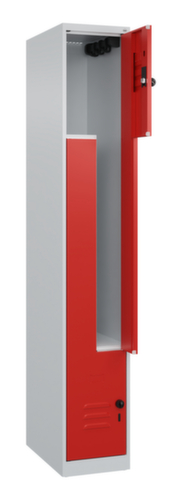 Les principales dimensions de C+P l’armoire vestiaire Classic Plus en un coup d’œil :par compartiment 1 tringle avec 3 doubles crochets coulissants anti-torsion. porte battante avec porte-étiquette et fentes d’aération. Les gonds intérieurs des portes battantes offrent l’avantage d’un visuel net, car aucune vis ou charnière n’est visible de l’extérieur. Le design de l’armoire n’est donc pas altéré et l’ensemble du meuble semble de meilleure qualité. La surface lisse est également plus facile à nettoyer, car aucun dépôt de saleté ou de poussière n’est à craindre aux endroits inaccessibles. Chaque porte est équipée de série d’un amortisseur, de sorte que, même fermée avec élan, elle ne claque pas. Cela contribue non seulement à améliorer l’environnement sonore, mais protège aussi l’armoire en acier des dommages. La structure BIONIC Steel Frame, inspirée de la nature, est une construction particulièrement efficace et stable. La structure interne raffinée composée de pliages, d’entretoises et d’espaces, ainsi que la plus grande épaisseur de matériau aux endroits cruciaux, comme à l’avant des parois latérales et dans les profilés de cloisons et de caissons, augmentent encore la rigidité. Verrouillable avec Porte-cadenas de sécurité pour cadenas. La serrure de sécurité est particulièrement résistante aux effractions puisqu’elle tourne en position verrouillée et se verrouille uniquement après le retrait de la serrure. Convient pour tous les cadenas avec une épaisseur d'anse de 6 - 8 mm. Les orifices de ventilation supplémentaires dans le compartiment, combinés aux fentes d’aération dans la porte, améliorent le flux d’air. L’intérieur de l’armoire est ainsi mieux ventilé et son contenu sèche plus vite, sans générer de mauvaises odeurs. Pour une apparence fine et un gain de place, l’armoire se pose directement au sol sans socle ni pieds. Des vis de mise à niveau assurent une pose sans vacillement en cas d’éventuelles irrégularités du sol. Le fond de l’armoire est galvanisé pour une protection anticorrosion améliorée. structure en acier, soudé de manière stable. Cela rend la structure particulièrement robuste et résistante, et donc plus durable. Les coins et les angles soudés du corps garantissent une plus grande étanchéité et donc une meilleure protection contre la poussière, l’humidité et la saleté qu’une structure vissée. En outre, il n’est pas nécessaire de procéder à des travaux d’entretien réguliers ni à des réajustements. corps avec thermolaquage en RAL7035 gris clair, face avant avec thermolaquage en RAL3020 rouge signalisation.