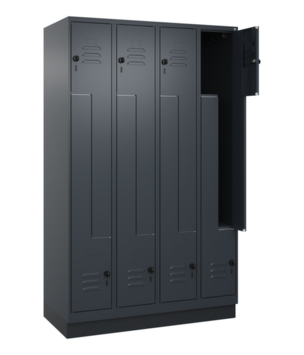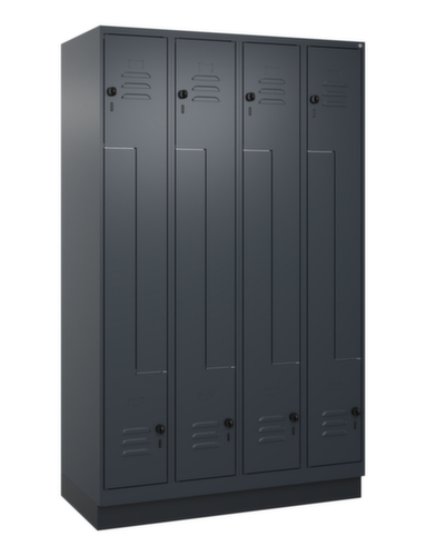 Les principales dimensions de C+P l’armoire vestiaire Classic Plus en un coup d’œil :par compartiment 1 tringle avec 3 doubles crochets coulissants anti-torsion. porte battante avec porte-étiquette et fentes d’aération. Les gonds intérieurs des portes battantes offrent l’avantage d’un visuel net, car aucune vis ou charnière n’est visible de l’extérieur. Le design de l’armoire n’est donc pas altéré et l’ensemble du meuble semble de meilleure qualité. La surface lisse est également plus facile à nettoyer, car aucun dépôt de saleté ou de poussière n’est à craindre aux endroits inaccessibles. Chaque porte est équipée de série d’un amortisseur, de sorte que, même fermée avec élan, elle ne claque pas. Cela contribue non seulement à améliorer l’environnement sonore, mais protège aussi l’armoire en acier des dommages. La structure BIONIC Steel Frame, inspirée de la nature, est une construction particulièrement efficace et stable. La structure interne raffinée composée de pliages, d’entretoises et d’espaces, ainsi que la plus grande épaisseur de matériau aux endroits cruciaux, comme à l’avant des parois latérales et dans les profilés de cloisons et de caissons, augmentent encore la rigidité. Verrouillable avec Porte-cadenas de sécurité pour cadenas. La serrure de sécurité est particulièrement résistante aux effractions puisqu’elle tourne en position verrouillée et se verrouille uniquement après le retrait de la serrure. Convient pour tous les cadenas avec une épaisseur d'anse de 6 - 8 mm. Les orifices de ventilation supplémentaires dans le compartiment, combinés aux fentes d’aération dans la porte, améliorent le flux d’air. L’intérieur de l’armoire est ainsi mieux ventilé et son contenu sèche plus vite, sans générer de mauvaises odeurs. Le socle encastré permet de répartir uniformément le poids de l’armoire sur le sol. Cela augmente la stabilité et l’armoire peut supporter des charges plus lourdes qu’une armoire à pieds. De plus, la saleté, la poussière et l’humidité ne peuvent pas s’infiltrer sous l’armoire, ce qui réduit la surface de nettoyage. structure en acier, soudé de manière stable. Cela rend la structure particulièrement robuste et résistante, et donc plus durable. Les coins et les angles soudés du corps garantissent une plus grande étanchéité et donc une meilleure protection contre la poussière, l’humidité et la saleté qu’une structure vissée. En outre, il n’est pas nécessaire de procéder à des travaux d’entretien réguliers ni à des réajustements. corps avec thermolaquage en RAL7016 gris anthracite, face avant avec thermolaquage en RAL7016 gris anthracite.