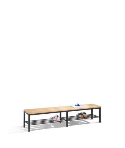 "metaDescription": "C+P Banc vestiaire avec lames en bois - LxP 2000x400mm, barrettes en bois, structure laqué, porte-chaussures",