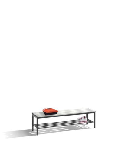 "metaDescription": "C+P Banc vestiaire avec lames en plastique - LxP 1500x400mm, rails en plastique gris clair, structure laqué, porte-chaussures",