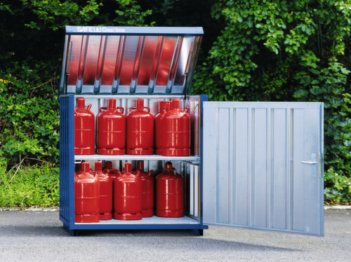 "metaDescription": "Cabine pour bouteilles de gaz avec toit rabattable - p. 11xbouteilles 33kg, HxlxP 1470x1420x1080mm, toit rabattable, a. porte à battants, acier galvanisé",