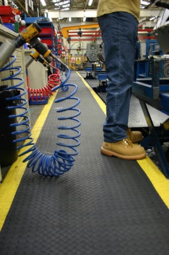 "longDescription": "<h2>Tapis industriel</h2><ul><li>Pour une utilisation intérieure sèche</li><li>Idéal pour les longues périodes debout</li><li>Bicouche : surface en PVC auto-extinguible, dessous en PVC expansé (laminé)</li><li>Surface avec profil de plaque d'usure</li><li>Risque de trébuchement minimisé grâce aux bords biseautés du tapis.</li><li>Résistant à la température de 0°C à +60°C</li></ul>",