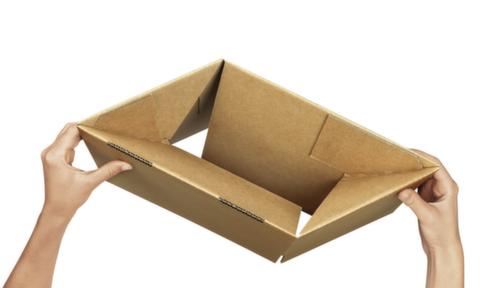 Les principaux détails en un coup d'œil :Pour colis légers à moyennement lourds jusqu'à 10 kg. Résiste à l'humidité et aux fluctuations de température. Rapide à ériger grâce à son fond automatique qui se bloque par simple pression sur les côtés. verrouillable avec fermeture auto-adhésive. carton réutilisable.