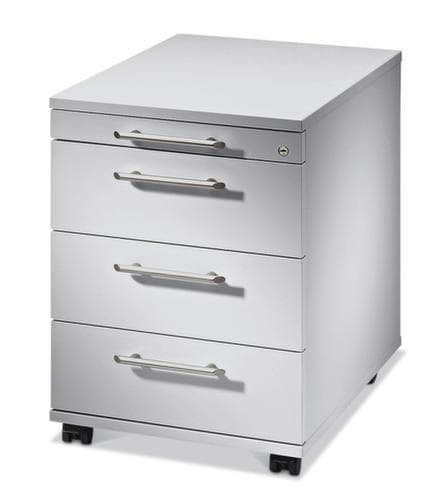 "description": "HxlxP 590x428x580mm, 4 tiroir(s), serr.cyl., corps gris clair, roulettes",