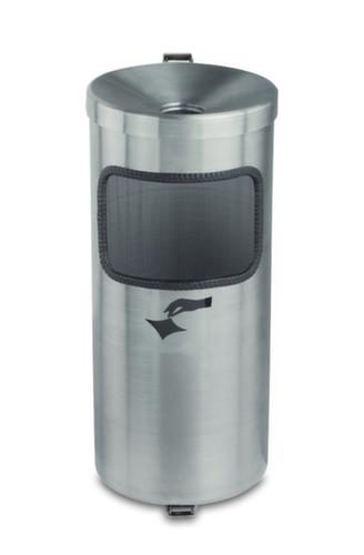 "description": "HxØ 410x180mm, poubelle capacité 10l, fixation murale, corps acier argentan",