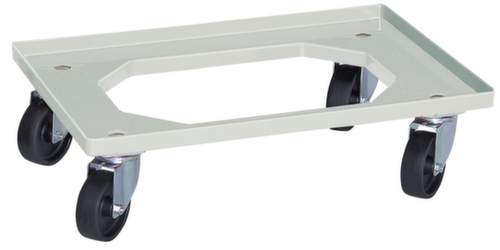 Idéal pour le bac norme Europe. plateforme ouvert. châssis en nature. structure en ABS. Manœuvre et déplacement aisés grâce à 4 roulettes pivotantes. Ø de roue 100 mm. Avec bandage plastique résistant à l’usure et ne nécessitant pas d’entretien sur jante plastique. moyeu avec palier lisse insensible aux chocs et résistant à la corrosion.