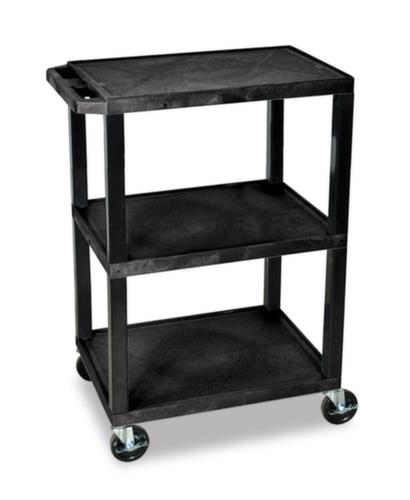 "title": "Chariot à étagères plastique 610x460 mm, force 150 kg, 3 plateaux",