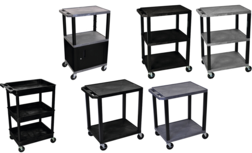 "metaDescription": "Chariot à étagères plastique - Force 150 kg, HxlxP 840x680x460 mm, avec 2 plateaux, en différentes exécutions",