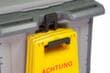 Le support pratique entre les deux poignées de poussée offre de la place pour loger jusqu’à 3 panneaux d’avertissement. Ainsi, les présentoirs sont rapidement à portée de main, afin de signaler clairement les zones dangereuses et les processus de nettoyage en cours.