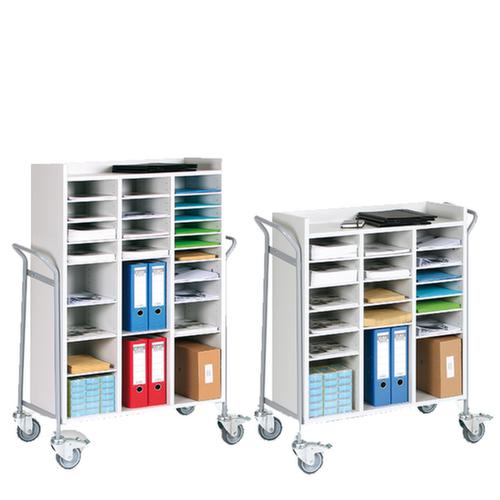 "metaDescription": "Chariot postal - avec max. 21 casiers, Force 150 kg, 4 roulettes pivotantes",