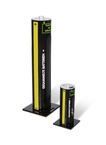 "metaDescription": "Collecteur de piles usagées, capacité 6 l - 6l, HxØ 375x140mm, Plastique en noir/jaune, a. visière, pose au sol",