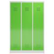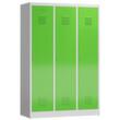 par compartiment 1 tablette à chapeaux et 1 tringle avec 4 doubles crochets. porte battante avec fentes d'aération. verrouillable avec serrure porte-cadenas pour cadenas. chaque compartiment à verrouillage individuel. Le socle encastré permet de répartir uniformément le poids de l’armoire sur le sol. Cela augmente la stabilité et l’armoire peut supporter des charges plus lourdes qu’une armoire à pieds. De plus, la saleté, la poussière et l’humidité ne peuvent pas s’infiltrer sous l’armoire, ce qui réduit la surface de nettoyage. structure en acier, soudé. corps avec finition peinture époxy électrostatique en RAL7035 gris clair, face avant avec finition peinture époxy électrostatique en RAL6018 vert jaune.