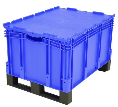 dimensions adaptées aux palettes européennes. en polypropylène incassable en bleu. Parois plein, fond double renfort. La marchandise stockée est protégée contre la poussière et la saleté grâce au couvercle à charnière en 2 parties. transport facile grâce à poignées ouvertes. avec porte-étiquettes sur tous les côtés. Plusieurs niveaux gerbable. convient pour aliments. Convient pour différents tissus, nous consulter.