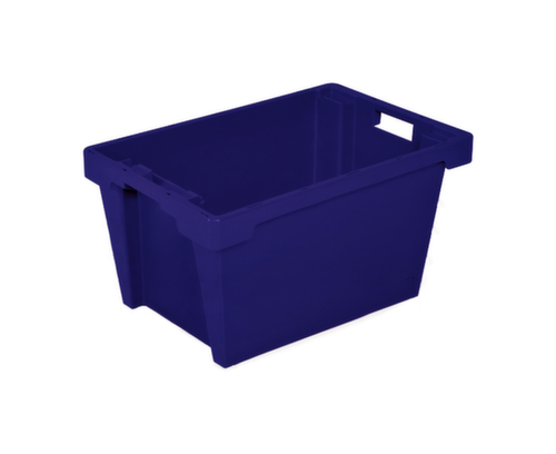 en polyéthylène résistant aux chocs en bleu. parois plein, tablette plein. manutention facile avec poignées ouvertes. emboitable par rotation à 180°. convient pour aliments. Adapté aux convoyeurs à rouleaux. résistant à la température de -40 °C à +60 °C.