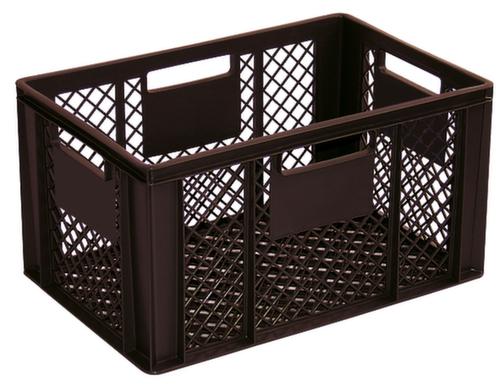 dimensions adaptées aux palettes européennes. en polypropylène incassable en marron. Parois ajourés, fond ajourés. Fond avec renfort grâce à des rainures de renfort. transport facile grâce à poignées coquilles. Plusieurs niveaux gerbable. convient pour aliments. Adapté aux convoyeurs à rouleaux. Résistant à la température -20 °C à +80 °C. Convient pour différents tissus, nous consulter. recyclable.