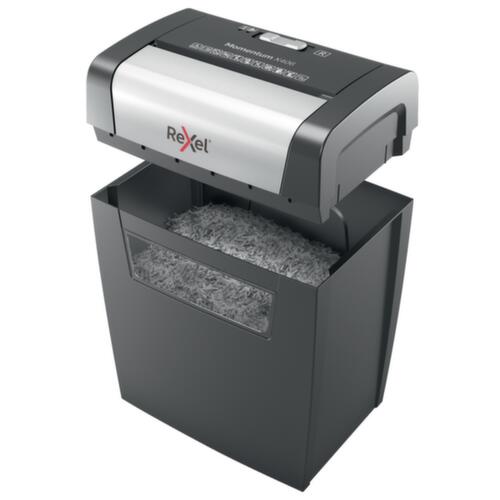 Les principales dimensions du destructeur de documents Momentum X406 en un coup d’œil :niveau de sécurité : Le niveau de sécurité P-4 n’autorise pas de coupe en bandes. Chaque particule peut être d’une largeur maximale de 6 mm sur un côté. Pour une feuille DIN A4, cela nécessite un déchiquetage en au moins 420 pièces. puissance 160 W.