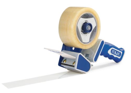 "longDescription": "<h2>Distributeur de main de sécurité</h2><strong>pour un emballage sûr sans risque de blessure</strong><br><ul><li>Haut degré de sécurité - couteau caché avec retour automatique de la lame</li><li>Souplesse d'utilisation au quotidien - frein de rouleau réglable manuellement et porte-rouleau interchangeable pour un noyau de rouleau de 38 mm ou 76 mm.</li><li>Utilisation appropriée et robuste - poignée souple et antidérapante, boîtier en métal et plastique</li></ul>",