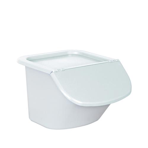 en polypropylène incassable. récipient en blanc et couvercle en blanc. parois : surfaces lisses sans soudures pour un nettoyage facile. équipé de avec une pelle qui peut être accrochée dans le récipient conformément aux directives HACCP. convient pour pour produits en vrac de toute nature. verrouillable avec couvercle rabattable. Le couvercle peut également être ouvert lorsque plusieurs bacs sont empilés. Le contenu du distributeur peut être facilement prélevé grâce à l’ouverture de prise inclinée. convient pour aliments.