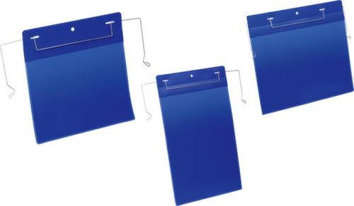 "description": "DIN A4, paysage, Hxl 225x311mm, tige métallique, PP, bleu/transparent",
